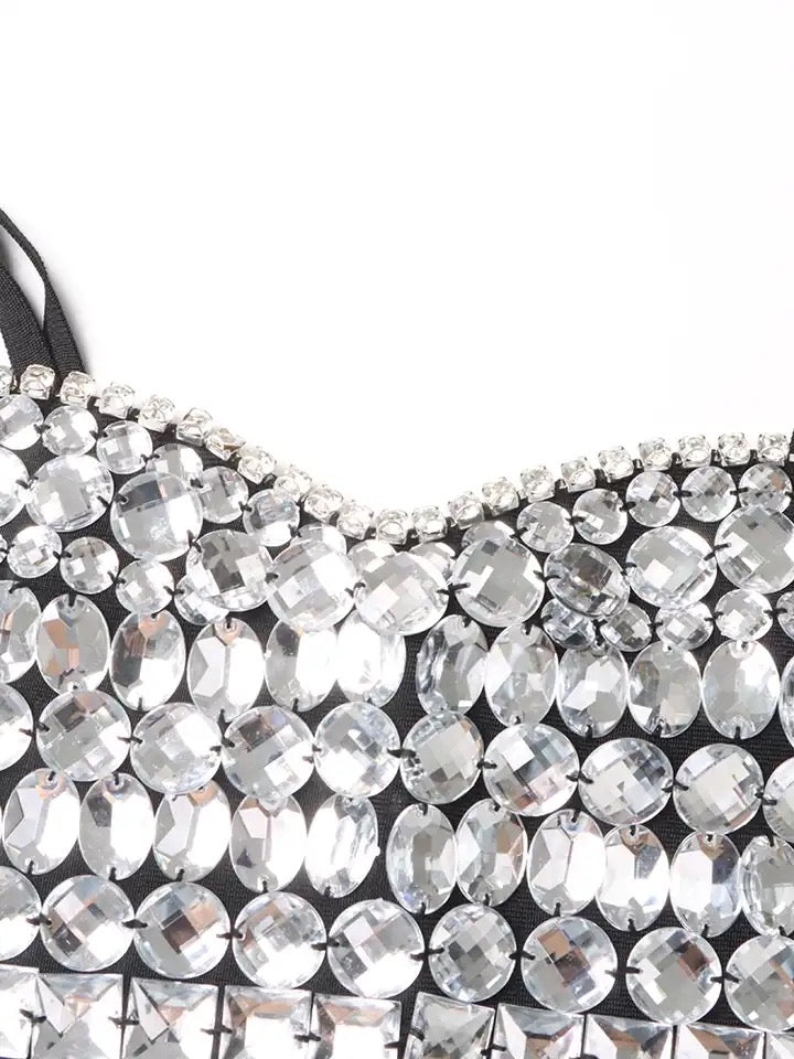 Get ready to dazzle and make a bold fashion statement with our exquisite Crystal Patchwork Black Mini Dress. This show-stopping ensemble is designed to captivate attention and leave a lasting impression!